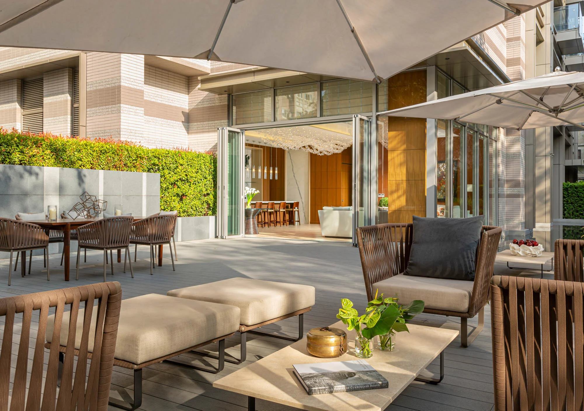 The story of the Nantun Tower begins with a deep understanding of the extended neighborhood itself. This new residential tower is located in Nantun, one of the oldest and most vibrant districts in Taichung City. The modern 22-story tower creates a new synergy for the future of this district’s development built upon the logic of existing urban settlement patterns. Bounded on both the north and south by highly local Taiwanese Streets, the design of the landscape seeks to inject as much ‘green’ as possible onto the existing, treeless streets, blurring the typical separation often experienced at the edge of sidewalks and along legal boundary distinctions. In this case, along the northern edge, the sidewalk has been integrated into the design of the garden, providing public use of the garden as a moment for pause, a comfortable place to sit under the shade of large, new street trees. The garden is defined by a rich layering of understory plant materials, natural stone monoliths and flowering understory trees. Stone monoliths weave with bands of planting in the front yard in layers to give the narrow garden a feeling of depth and enhance the sense of privacy from the street.