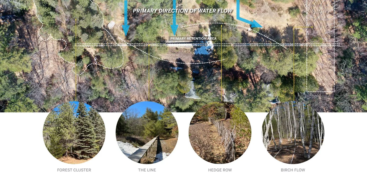 The primary objective of the framework plan is the planned absorption of the plan itself into a larger story of succession resulting in the creation of expanded habitat territory and micro-climatic scenarios into which further tweaking is performed over time. The experience of the landscape and focus of ongoing design initiatives evolves as the site continues to evolve and as new conditions emerge. There has become a dynamic blurring between the series of interventions and the dynamics of the parent community resulting in new opportunities to interpret, wander, and tweak.